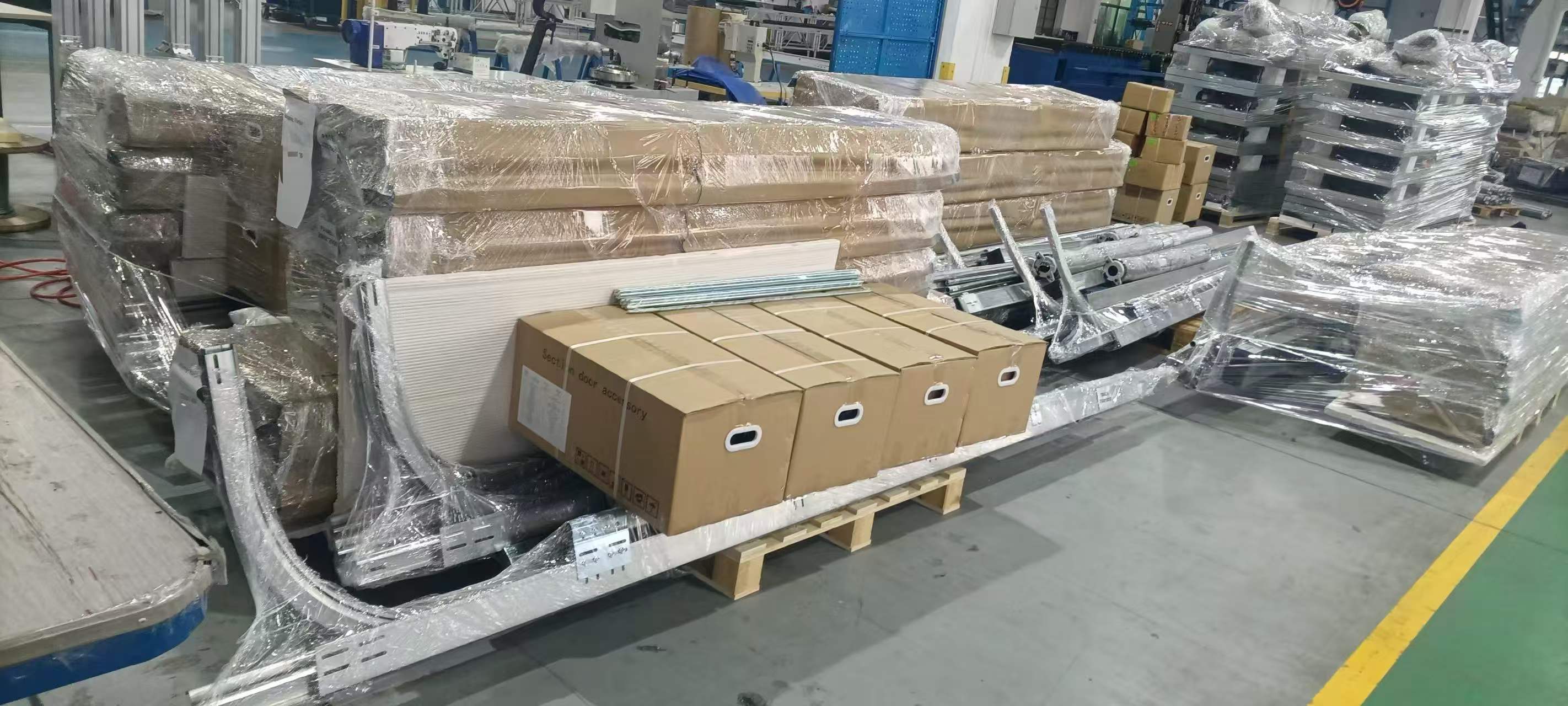A csomagolás különösen fontos a nehéz és nagy berendezéseknél, mint például a szekcionált ajtók és a kiegyenlítők.